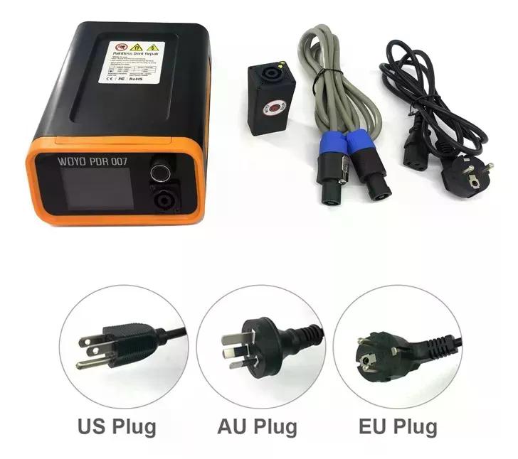 * PRODUCTO DISPONIBLE ENTREGA INMEDIATA *——————————————————————————————WOYO PDR007 Reparación de abolladuras sin pintura para quitar abolladuras del cocheEl PDR007 de WOYO es una unidad de inducción magnética portátil diseñada para la eliminación de abolladuras sin pintura de paneles mediante inducción de calor rápida y focalizada.La unidad también puede utilizarse para retractilar metal estirado.Rápido de reparar y fácil de usar son sus mayores ventajas.La unidad tiene varias configuraciones que se pueden ajustar en función de su aplicación.Para kits de reparación de carcasas de coches de hierro.Personajes principales:1. WOYO PDR007 es fácil de usar, cualquier trabajador con conocimientos de composición de metales puede dominarlo en tres minutos.2. WOYO PDR007 puede arreglar abolladuras suaves en superficies metálicas en sólo 30 segundos.3. Recupera rápidamente la inversión. En un caso, un cliente pudo recuperar su inversión después de reparar seis coches.4. Incorpora una gran pantalla de visualización para un control preciso y seguimiento del progreso en tiempo real.5. Aplicación: abolladura suave, cuanto más cerca de las partes centrales, más fácil la abolladura ser reparado.6. Certificado CE FCC ROHS PSE7. Método de reparación: Con la inducción de calor rápido y enfocado en la abolladura que rodea a través del mango de reparación, la abolladura luego se estiró y reparado por sí mismo.8. Modo de control de tiempo: Reparación de abolladuras de color oscuro sugerido.El tiempo de trabajo puede ser preestablecido, mientras que la potencia se fija en 100%, lo que significa que si desea calentar por ejemplo 0,5 seg, entonces usted puede preestablecer este tiempo y dejará de funcionar después del tiempo establecido.El intervalo de tiempo va de 0,5 a 4 segundos.Esto puede ser útil en la aplicación de eliminación de abolladuras para evitar quemar la abolladura.También hemos añadido un dial extra MAX para extender el tiempo de trabajo como desee.9. Modo de control de potencia: Reparación de abolladuras de color claro sugerido.La potencia puede ser preestablecida de 20% a 100%.Utilizando el modo de control de potencia, el tiempo de trabajo se puede ajustar por ON / OFF en el mango de reparación.Lista de accesorios:1 * PDR007 Principal1 * Cable principal (3M)1 * Cable de alimentación (1.5M)1 * Mango de reparación1 * Manual de Instrucciones1 * Maletín de plástico