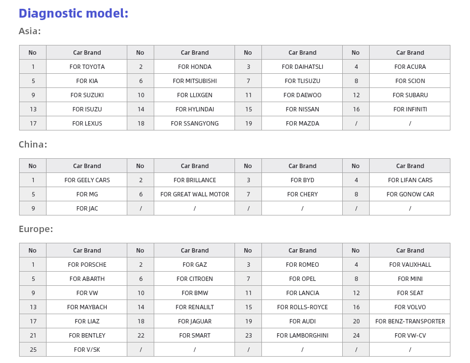 • Soporta más de 1.000 modelos de automóviles y camiones de marcas múltiples.